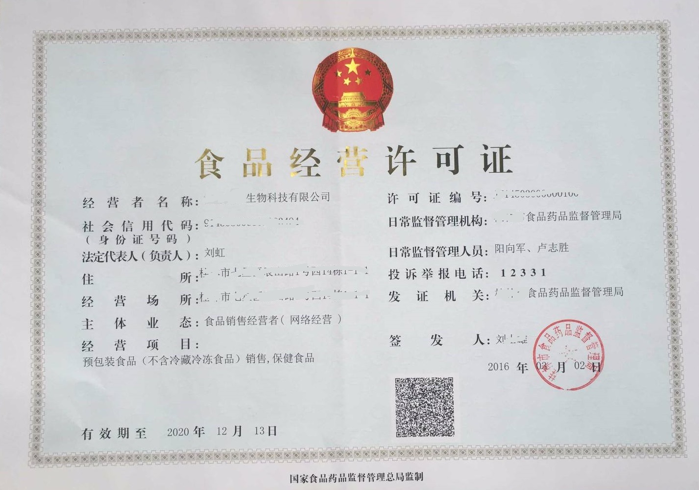 2016年新版食品生產許可證